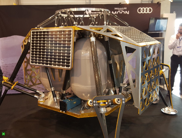 Mond-Lander der Firma Part-Time-Scientists GmbH Die farbig hervorgehobenen Teilen wurden von der IWE GmbH & Co. KG gefertigt.